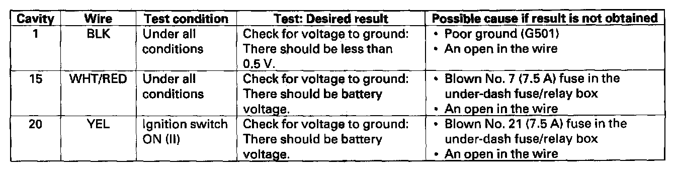 6. With the connector still disconnected, make these input tests at the connector.