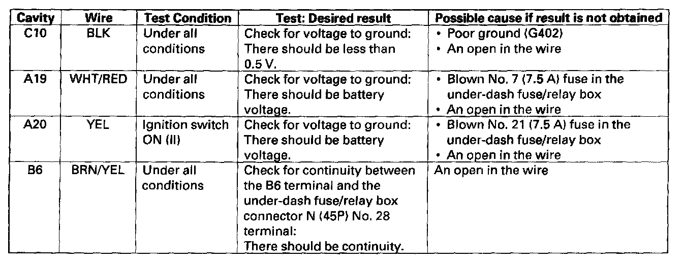 Gauge Control Module Input TestNOTE: Check the No. 22 (120 A), No. 23 (50 A), No. 15 (40 A) fuse in the under-hood fuse/relay box before troubleshooting.