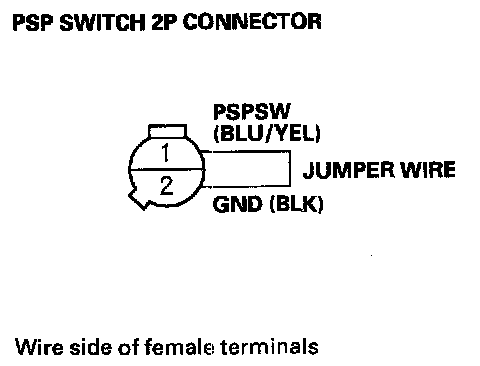 19. Remove the jumper wire from the PSP switch 2P connector.