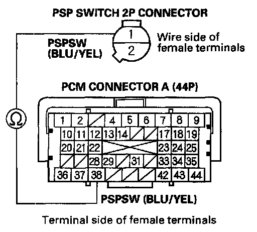 Home >> Honda >> 2007 >> Ridgeline V6-3.5L >> Repair and Diagnosis >> Powertrain Management >> Computers and Control Systems >> Testing and Inspection >> Component Tests and General Diagnostics >> PSP Switch Signal Circuit Troubleshooting