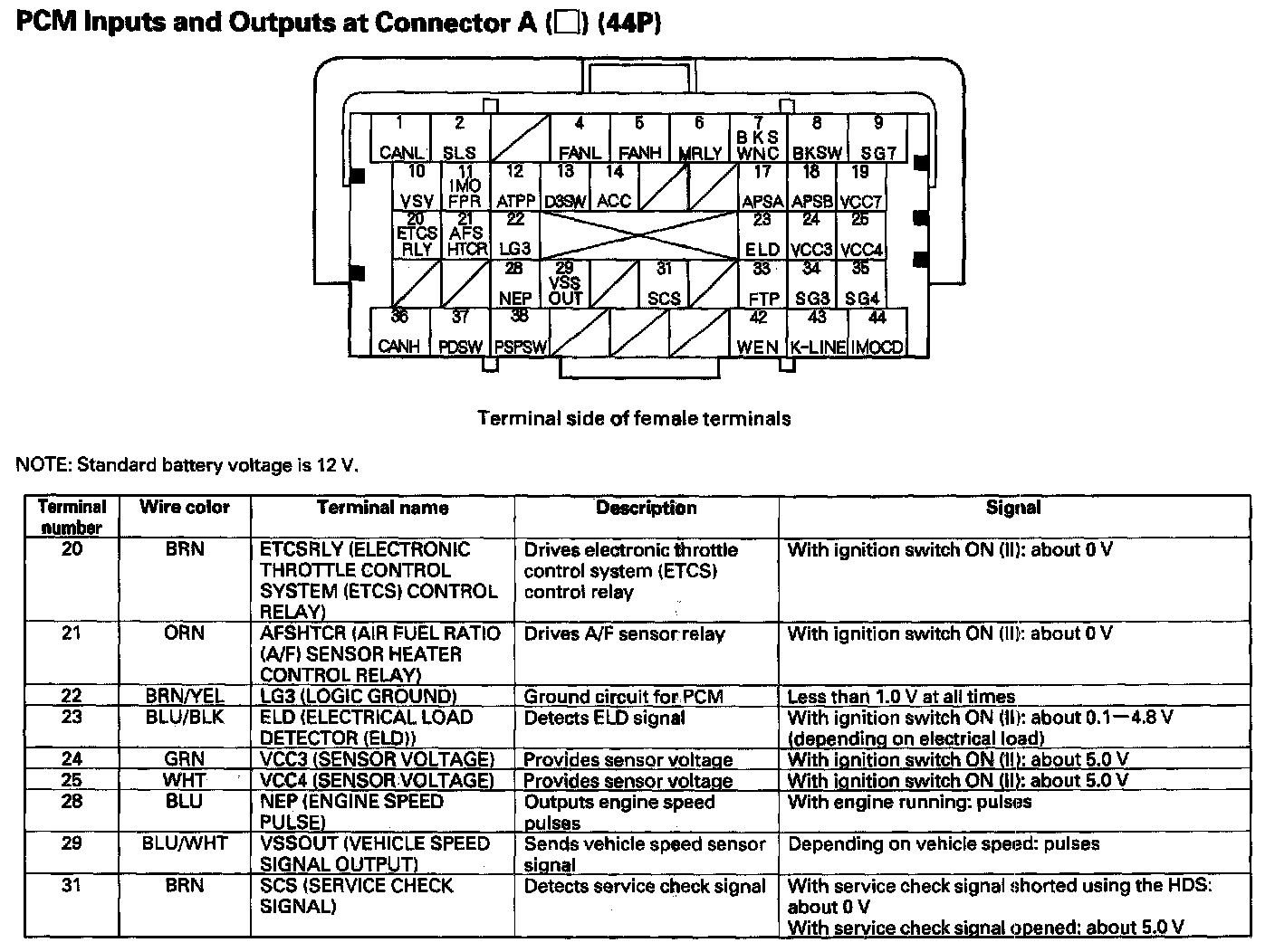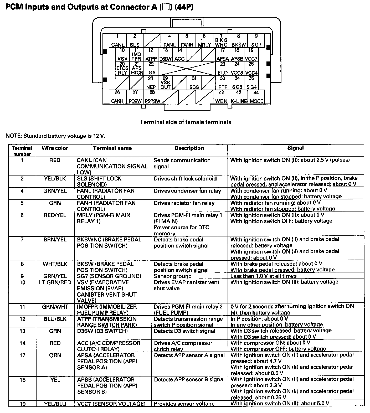 PCM Inputs And Outputs At Connector A (44P) Part 1: