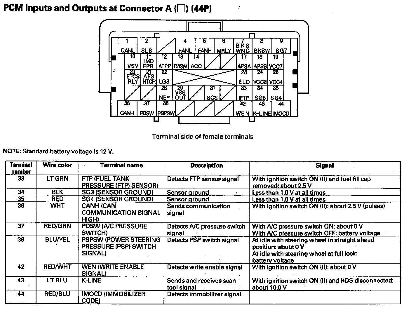 PCM Inputs And Outputs At Connector A (44P) Part 3: