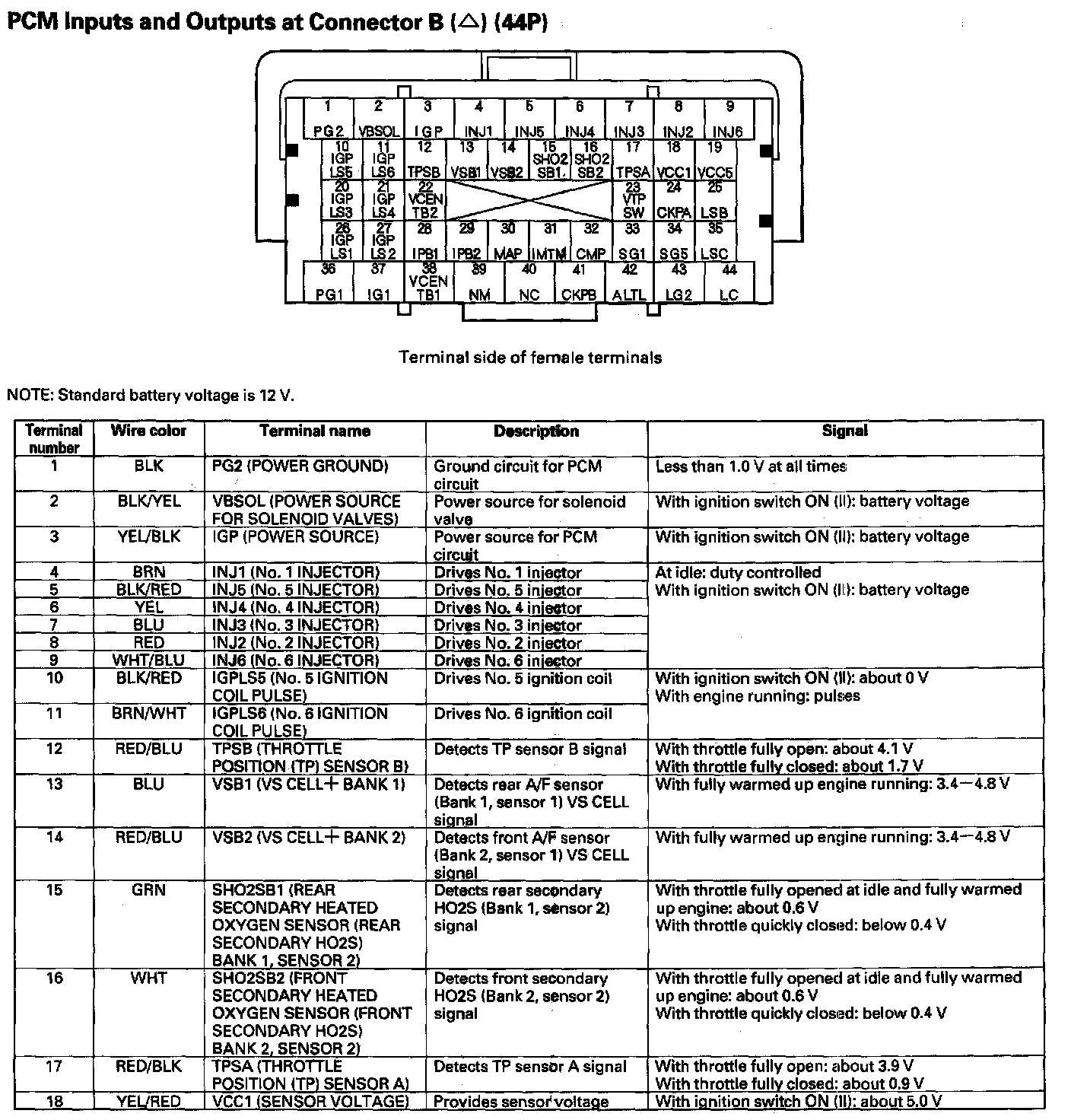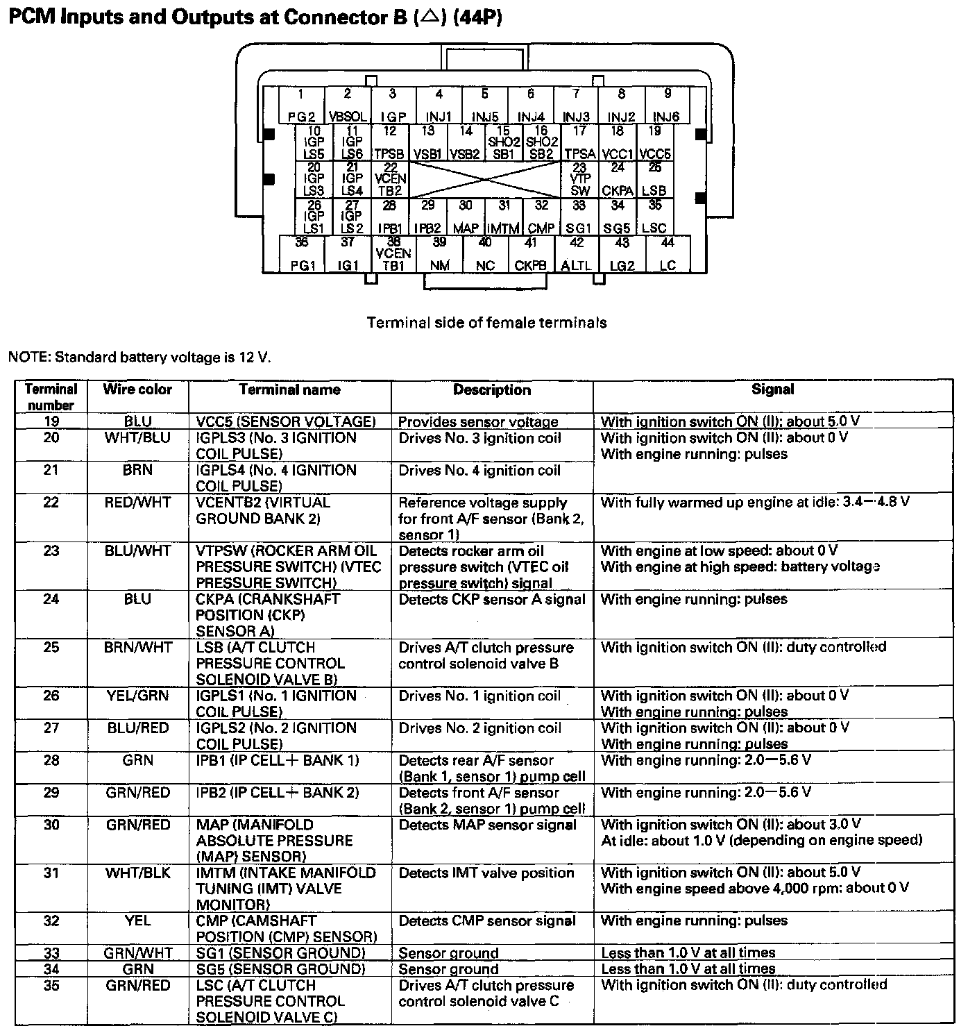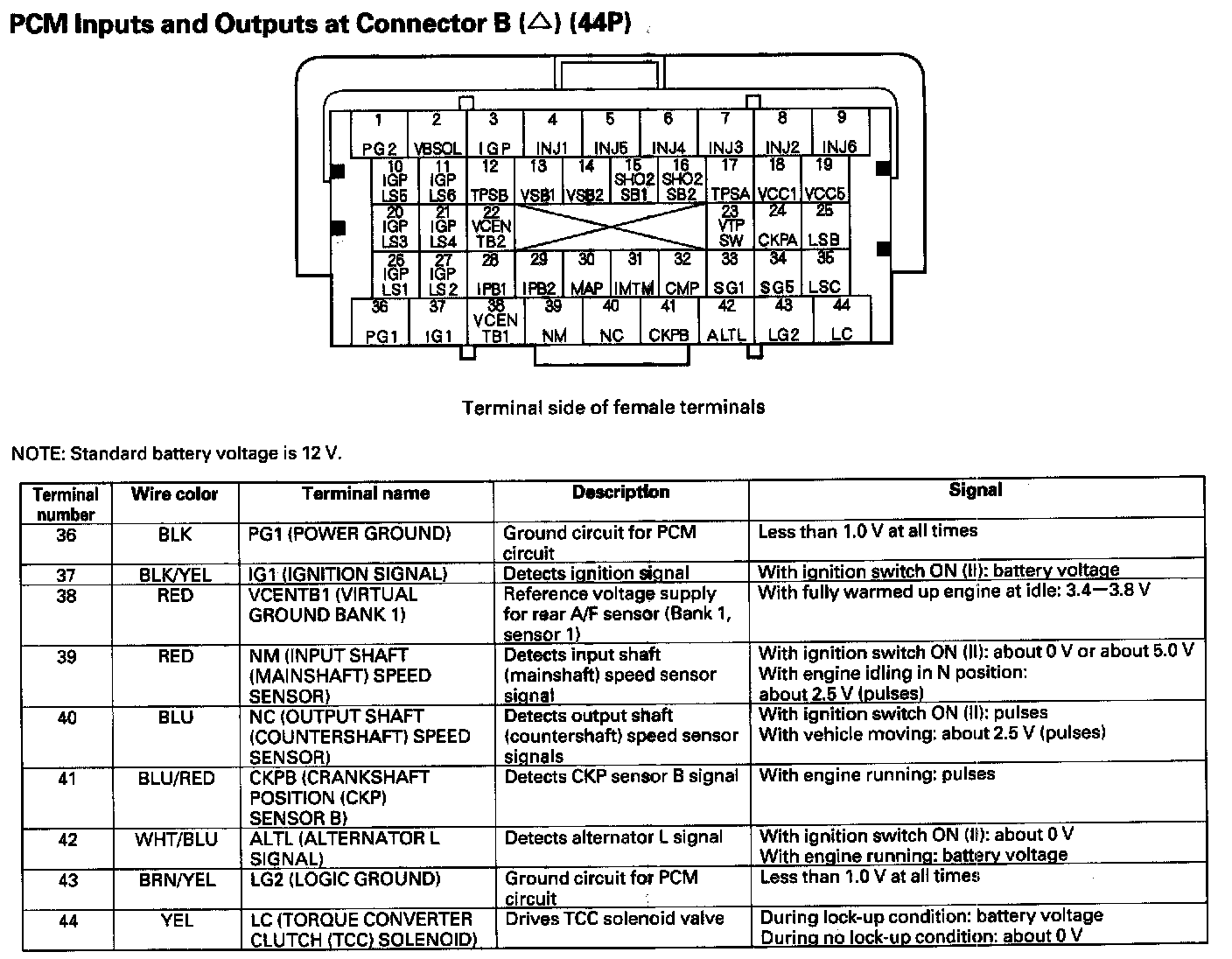 PCM Inputs And Outputs At Connector B (44P) Part 1: