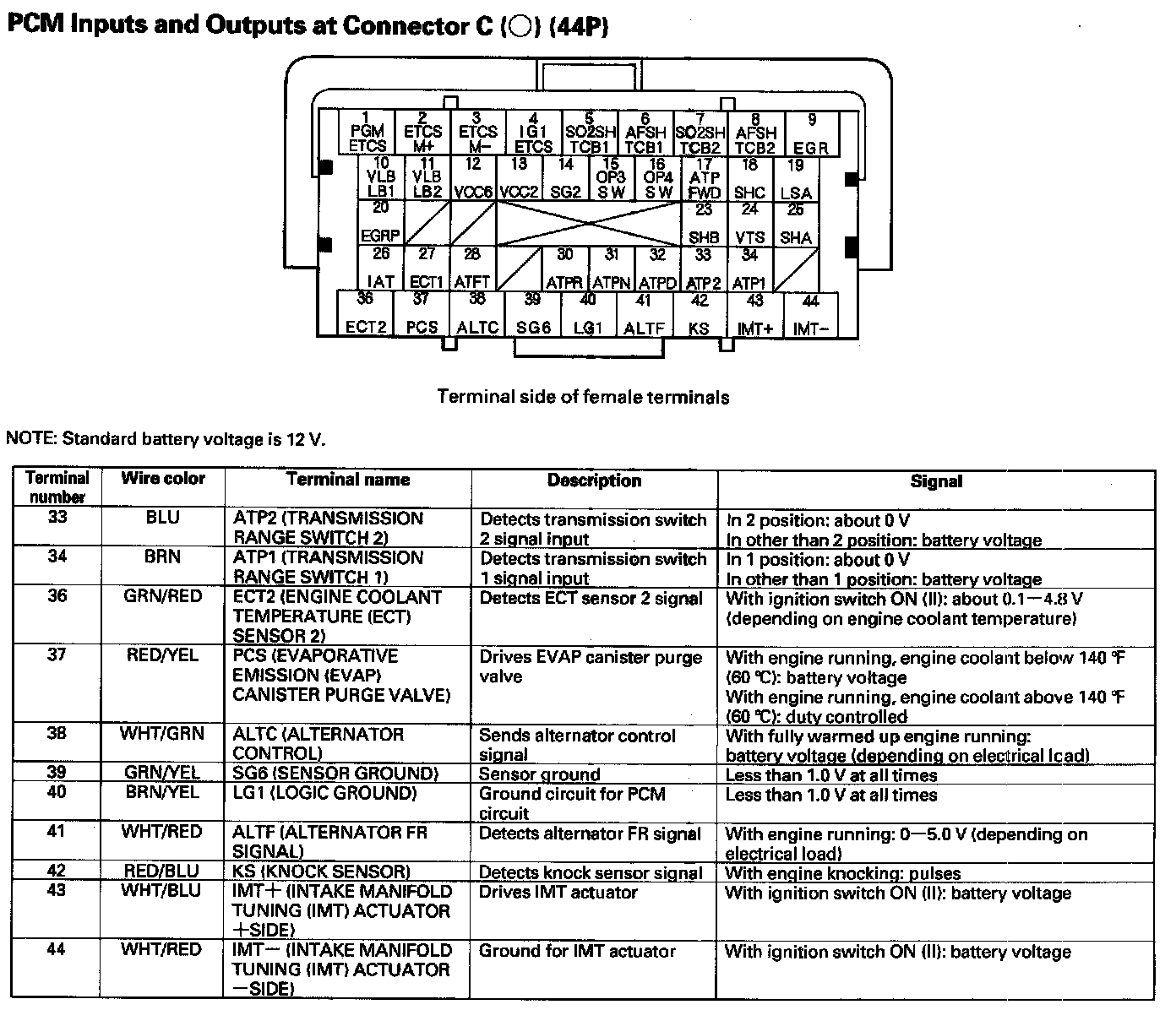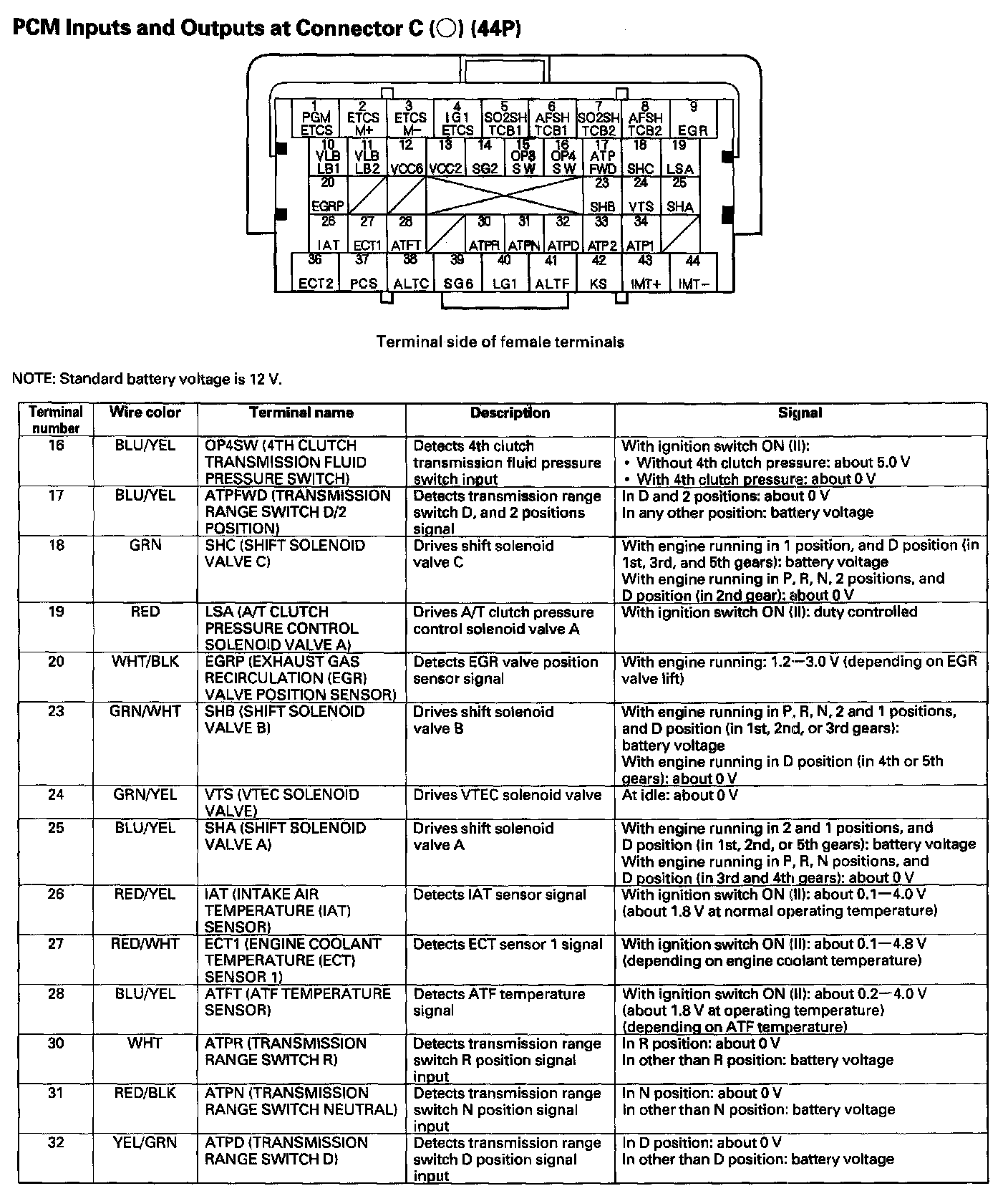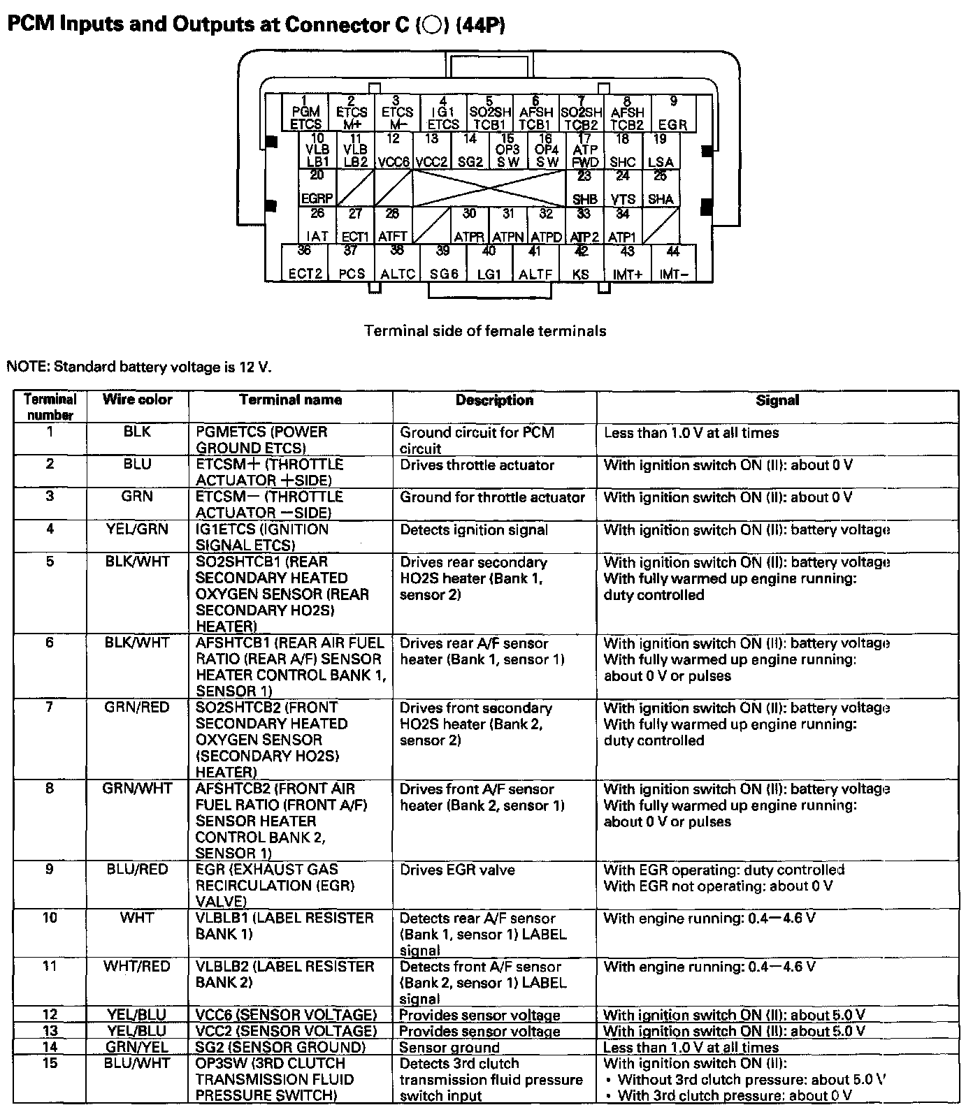 PCM Inputs And Outputs At Connector C (44P) Part 1: