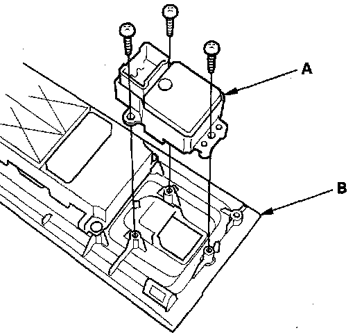 2. Remove the three mounting screws, then remove the back window switch (A) from the switch panel (B).