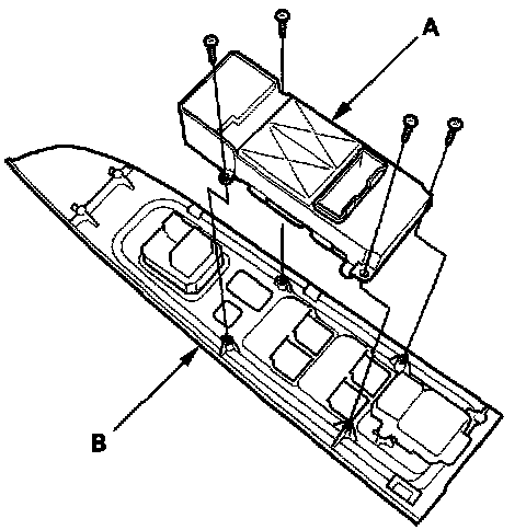 2. Remove the four mounting screws, then remove the master switch (A) from the switch panel (B).