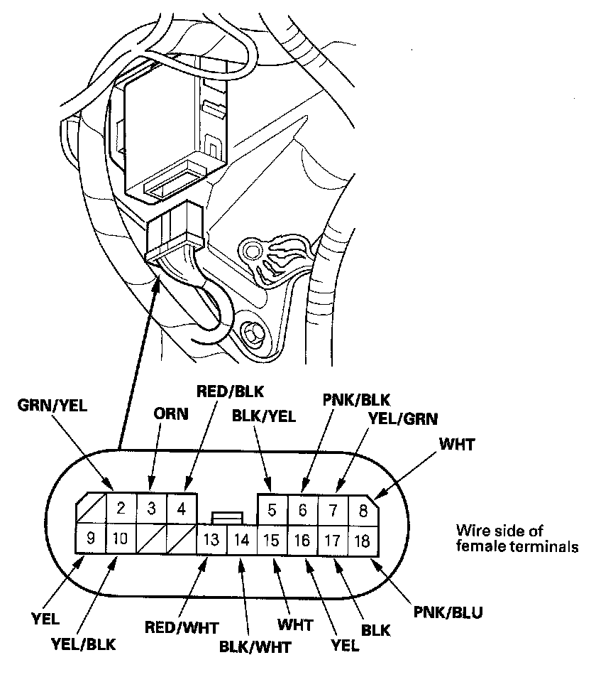 4. Disconnect the 18P connector from the control unit, then make these input tests at the connector.