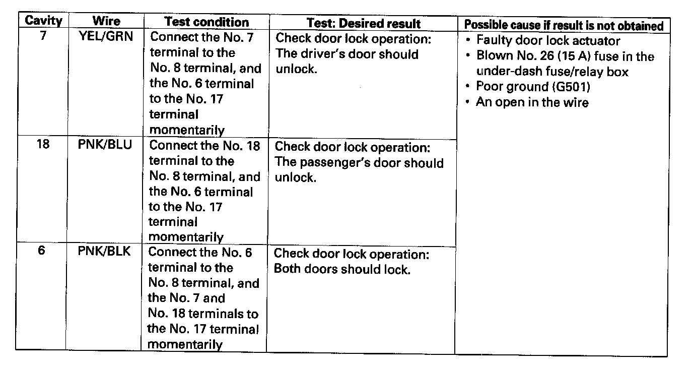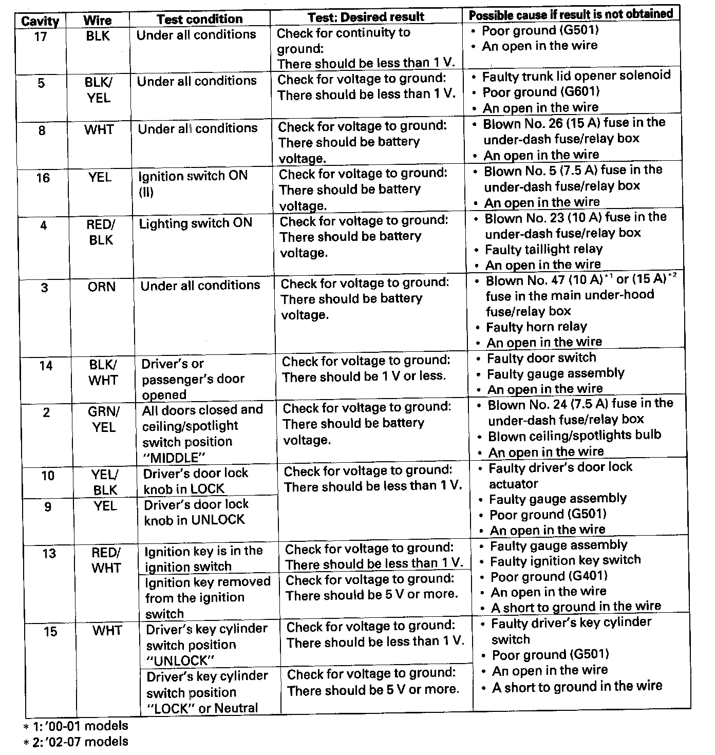 Home >> Honda >> 2007 >> S2000 L4-2.2L >> Repair and Diagnosis >> Body and Frame >> Locks >> Keyless Entry >> Testing and Inspection >> Keyless Door Lock Control Unit Input Test