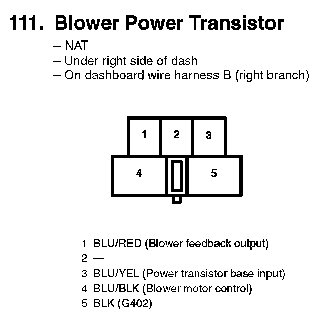 111. Blower Power Transistor: