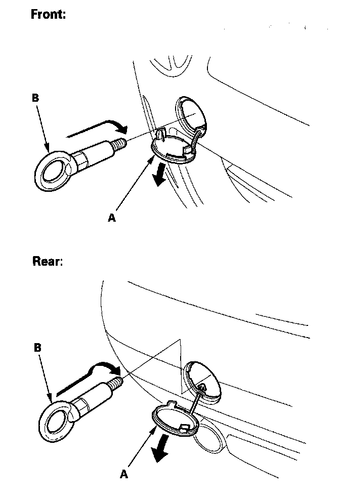 2. Remove the towing hook (B) from the tool kit.