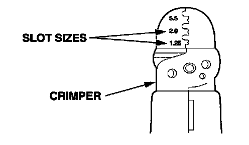4. Position the terminal in the crimping tool slot with the solid portion of the terminal toward the anvil and the open section toward the former.