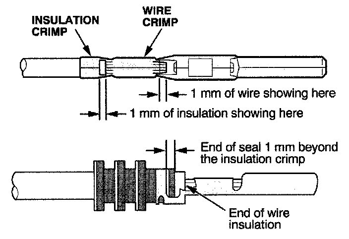 - If you do not have a wire seal, then use the next larger size crimp slot. Position the crimping tool over the insulation crimp section of the terminal, then squeeze the tool with both hands until the stops make contact.