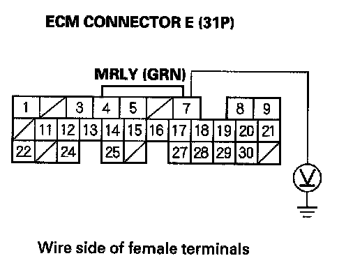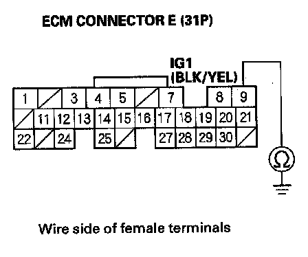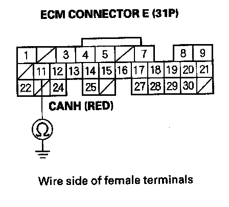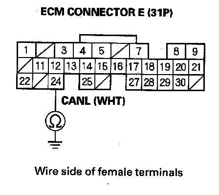 31. Check for continuity between ECM connector terminal E24 and body ground.