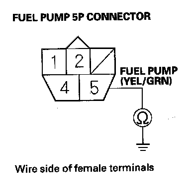 52. Check for continuity between fuel pump 5P connector terminal No. 5 and body ground.