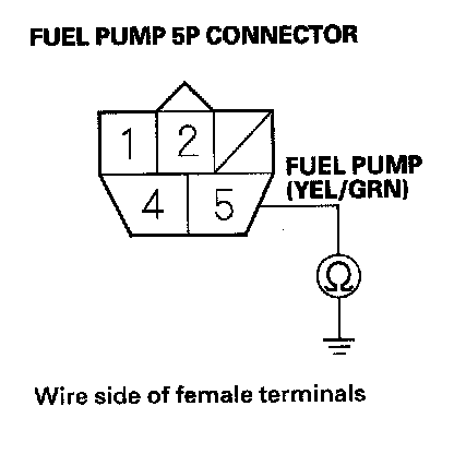 54. Check for continuity between fuel pump 5P connector terminal No. 5 and body ground.