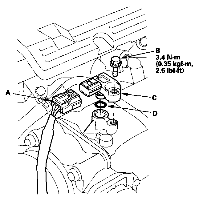 4. Install the parts in the reverse order of removal with a new O-ring (D).