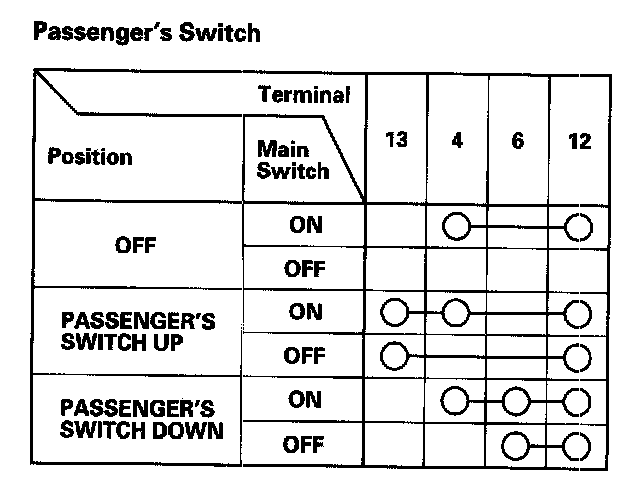 3. Check for continuity between the terminals in each switch position according to the table.