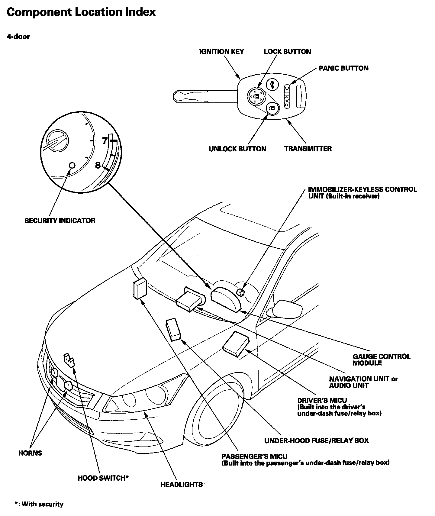 Keyless/Power Door Locks/Security System Component Location Index:
