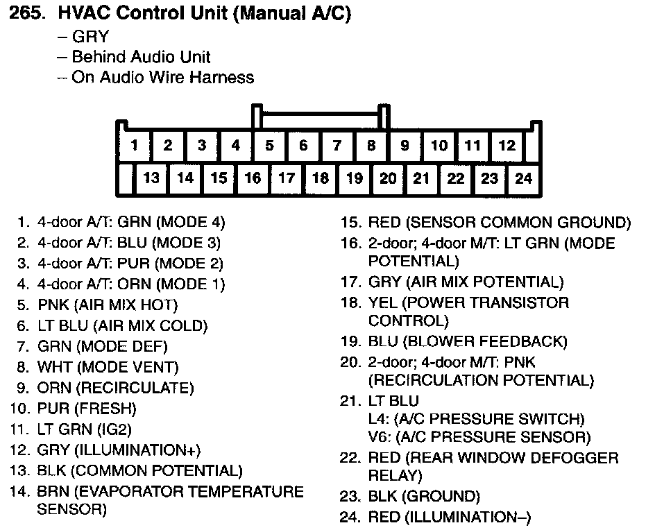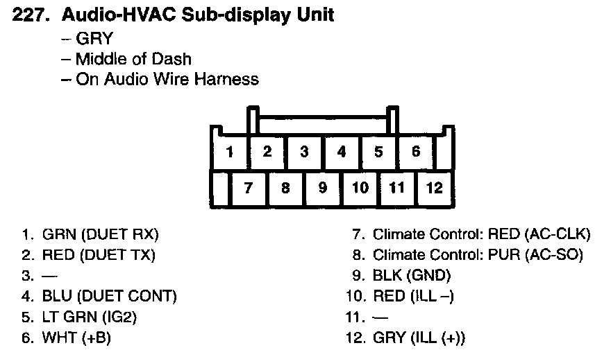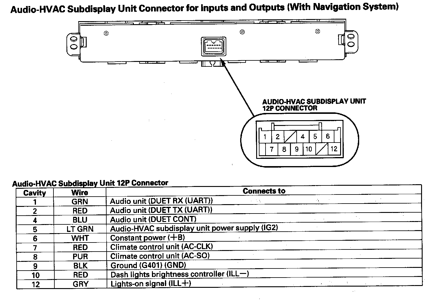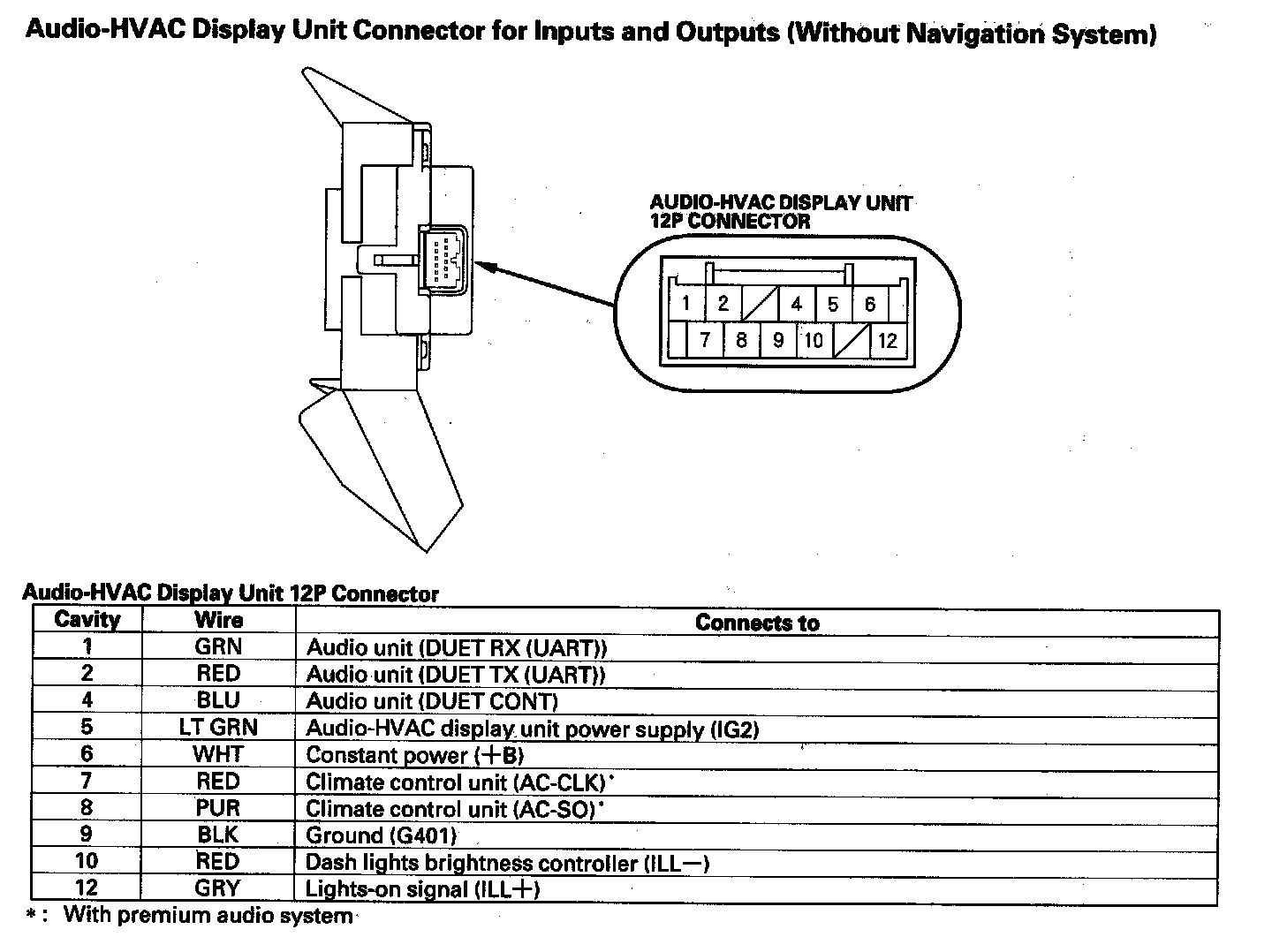 Audio-HVAC Display Unit Connector For Inputs And Outputs (Without Navigation System):