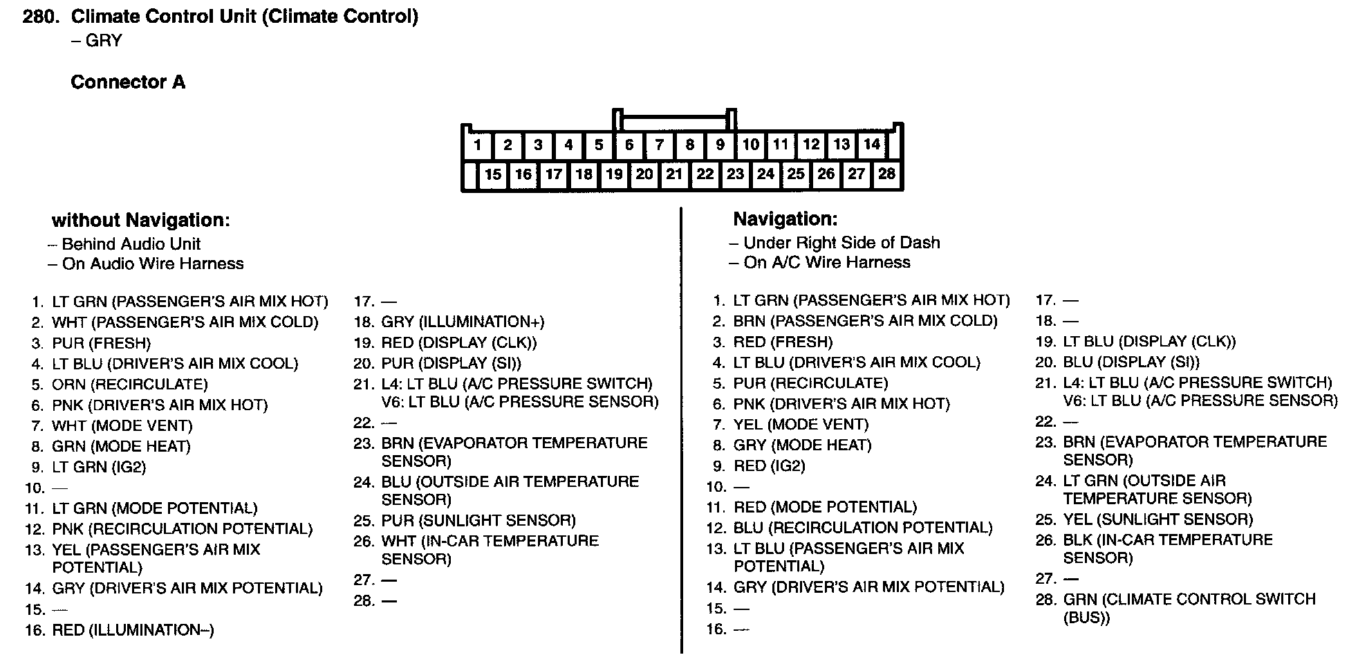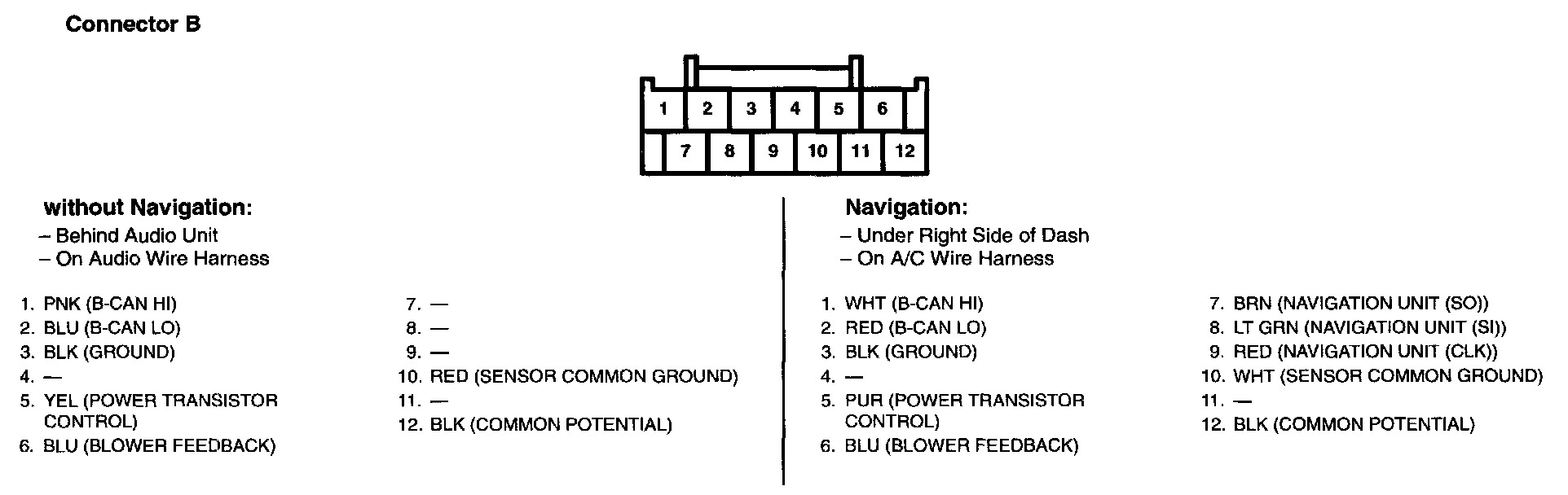 Audio-HVAC Subdisplay Unit Connector For Inputs And Outputs (With Navigation System):