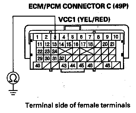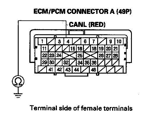 31. Check for continuity between ECM/PCM connector terminal A3 and body ground.