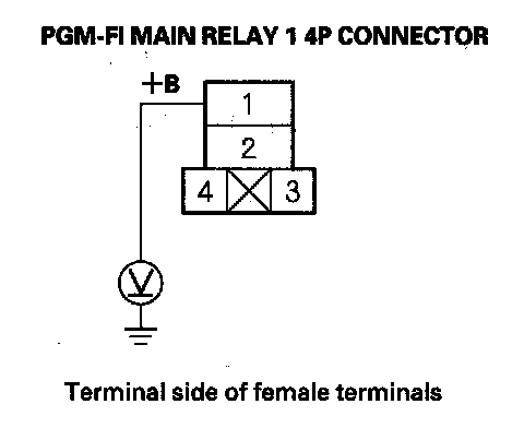 67. Measure voltage between PGM-FI main relay 1 4P connector terminal No. 1 and body ground.