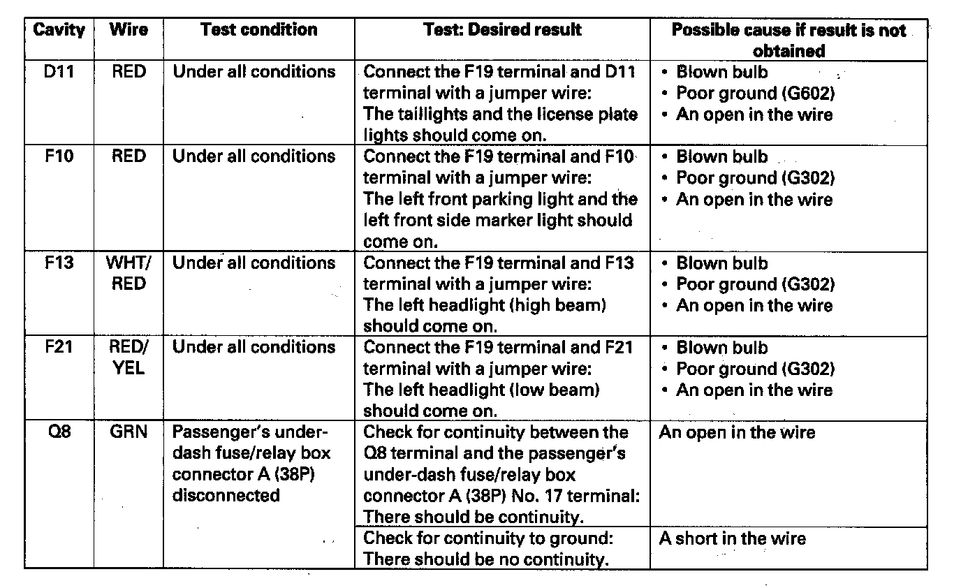 - Before testing, make sure the No. 15 (7.5 A) fuse in the driver's under-dash fuse/relay box is OK.