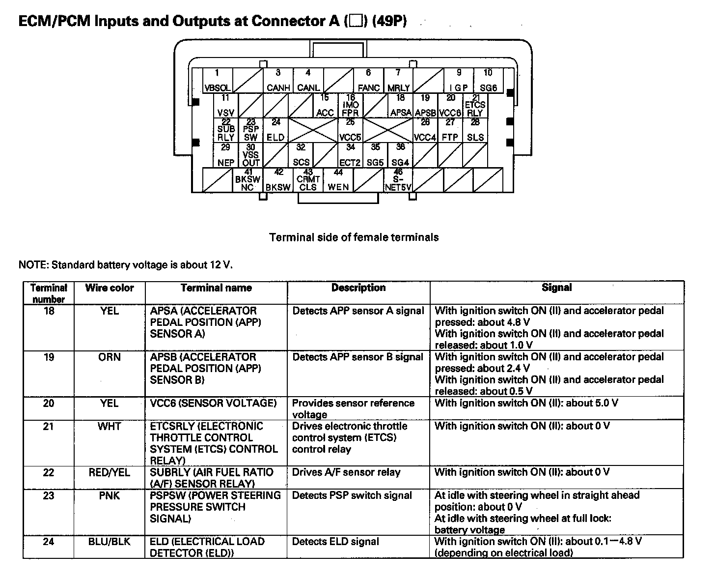 ECM/PCM Inputs And Outputs At Connector A (49P) (Part 1):