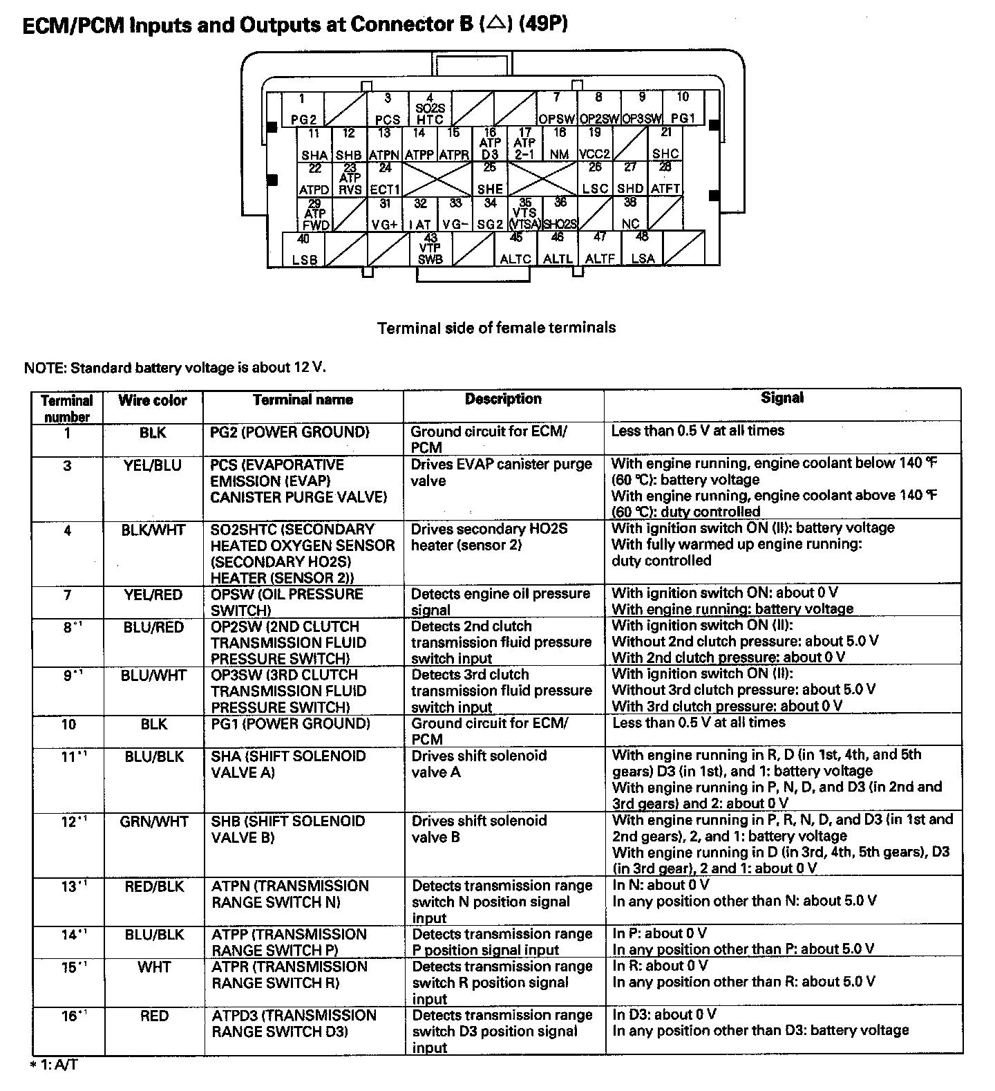 ECM/PCM Inputs And Outputs At Connector B (49P) (Part 1):
