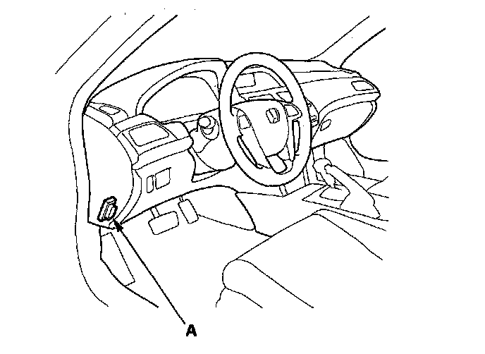 2. Connect the HDS to the data link connector (DLC) (A) located under the driver's side of the dashboard.