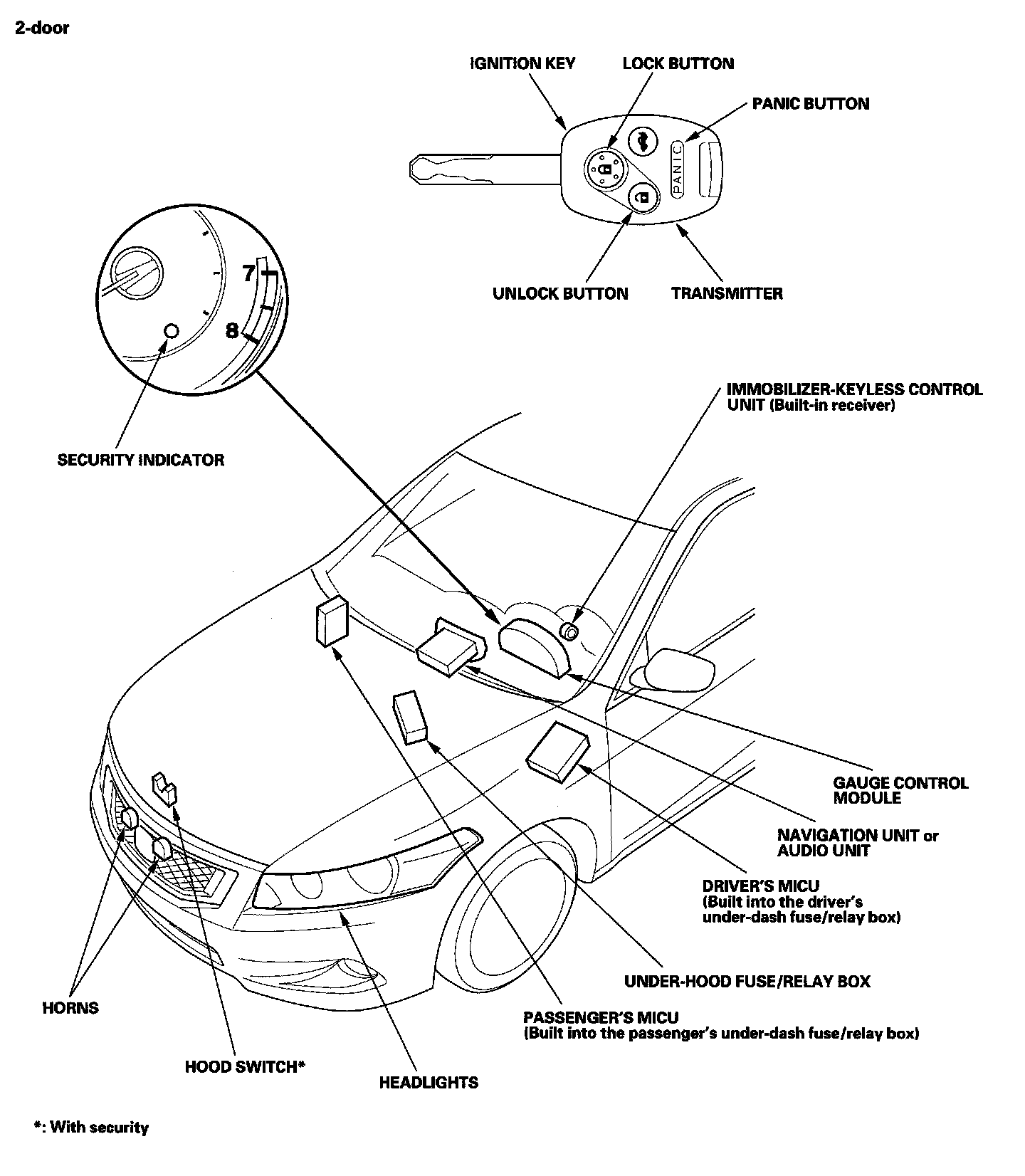 Keyless/Power Door Locks/Security System Component Location Index: