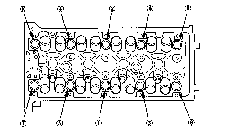 Tighten the cylinder head bolts in sequence 39 N-m (4.0 kgf-m, 29 lbf-ft)