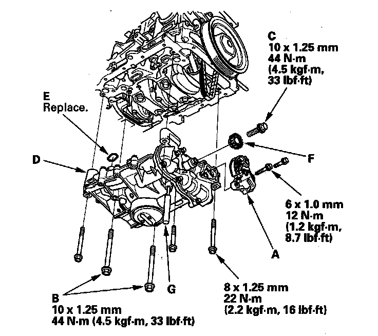 Torque the bolts to 29 N-m (3.0 kgf-m, 22 lbf-ft).