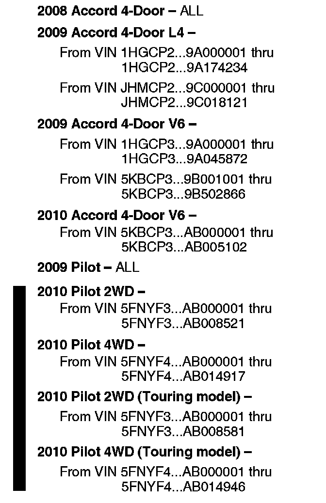 See VEHICLES AFFECTED