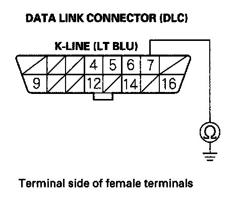 17. Check for continuity between DLC terminal No. 7 and body ground.