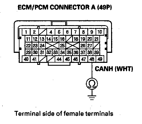 33. Check for continuity between ECM/PCM connector terminal A49 and body ground.
