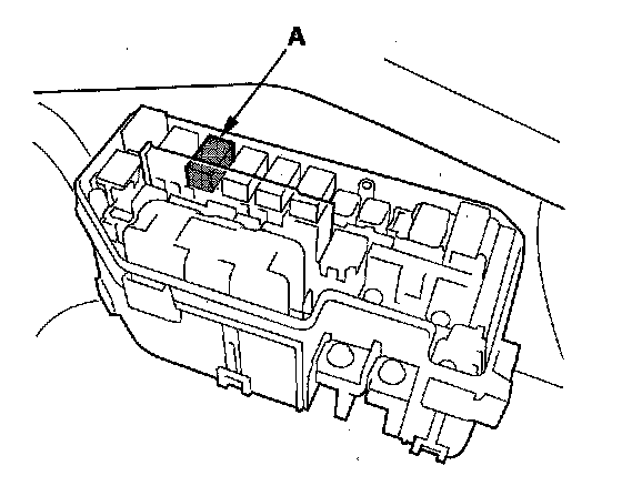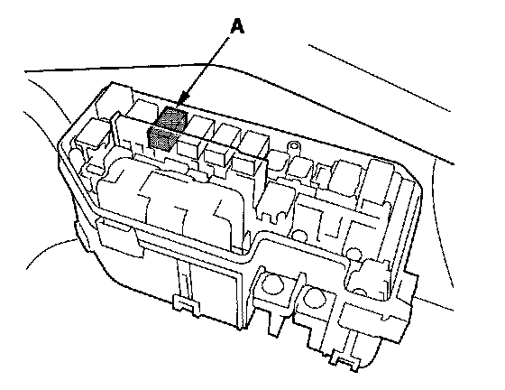 49. Remove PGM-FI main relay 2 (FUEL PUMP) (A) from the driver's under-dash fuse/relay box.