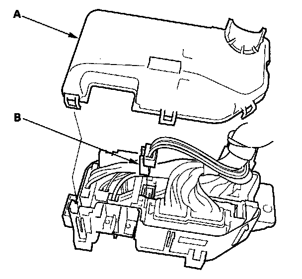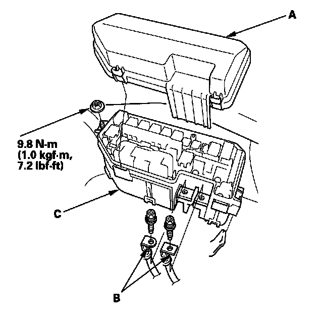 3. Remove the under-hood fuse/relay box (C) from the bracket.