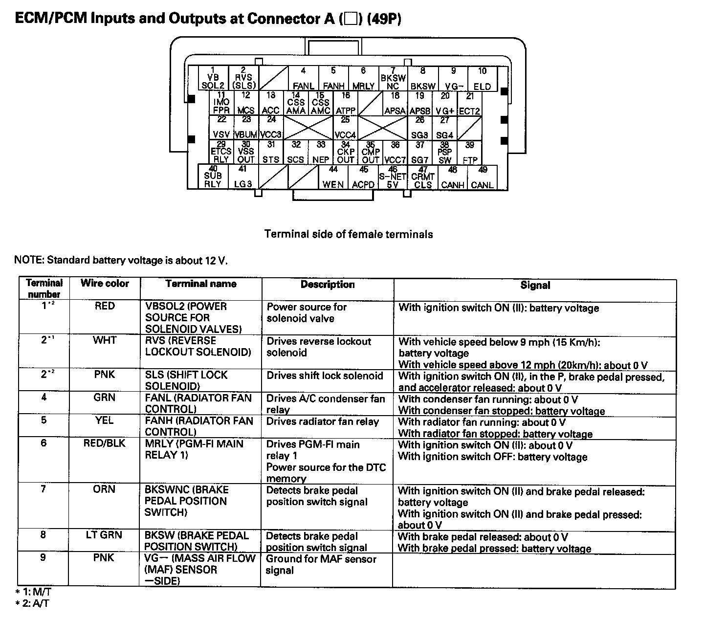 ECM/PCM Inputs And Outputs At Connector A (49P) (Part 1):