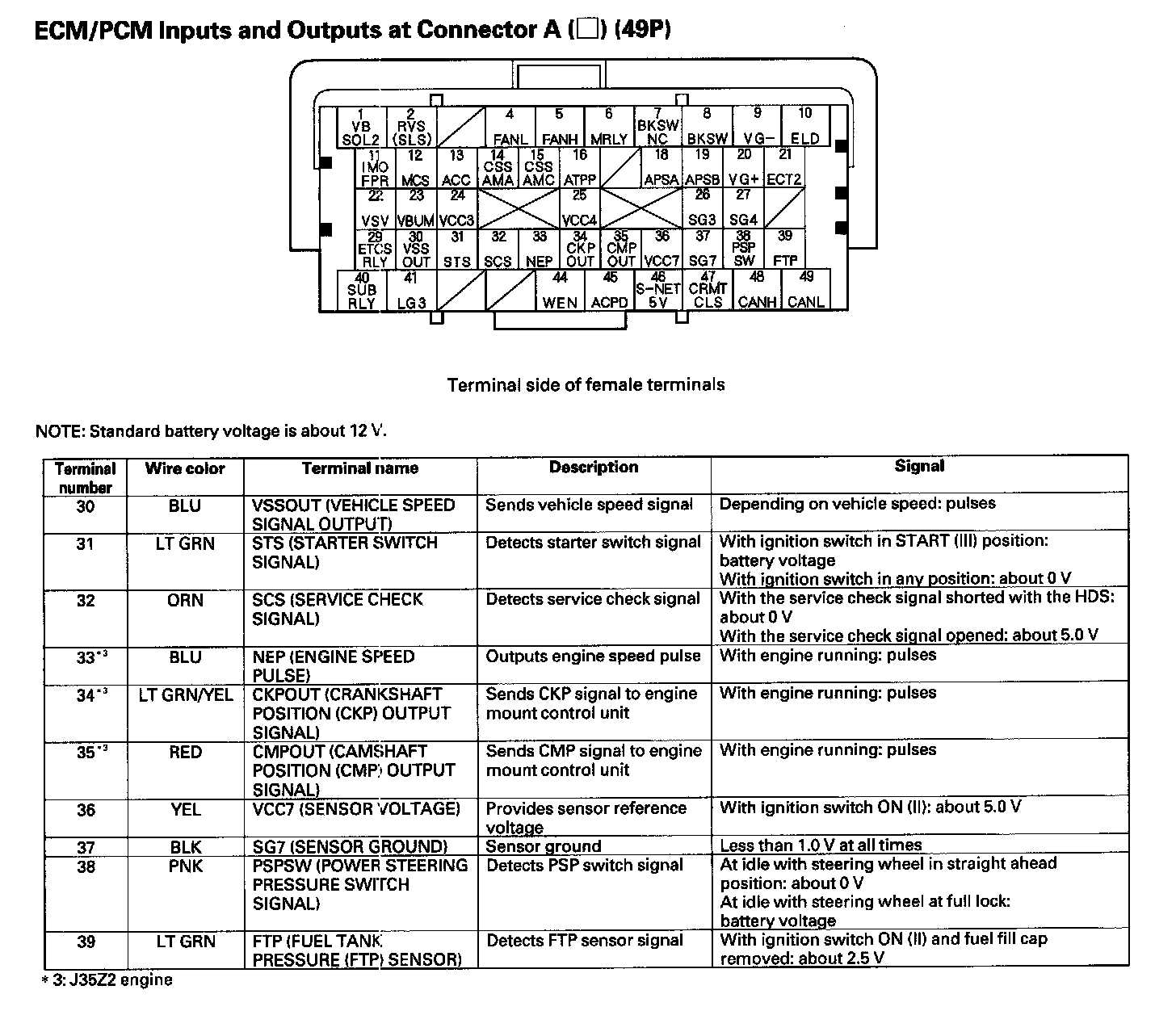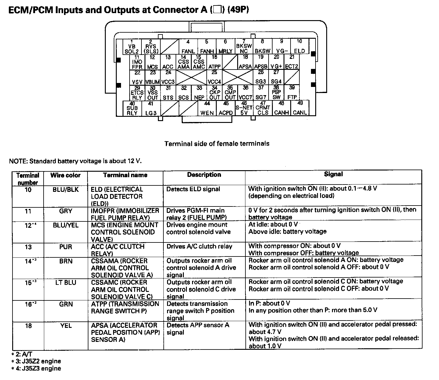 ECM/PCM Inputs And Outputs At Connector A (49P) (Part 3):