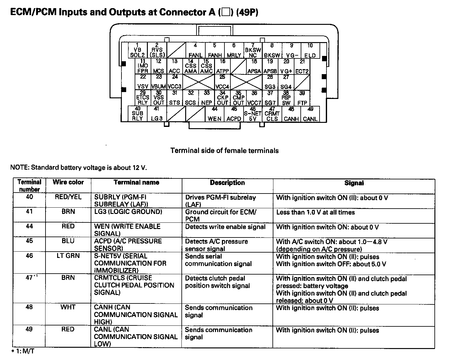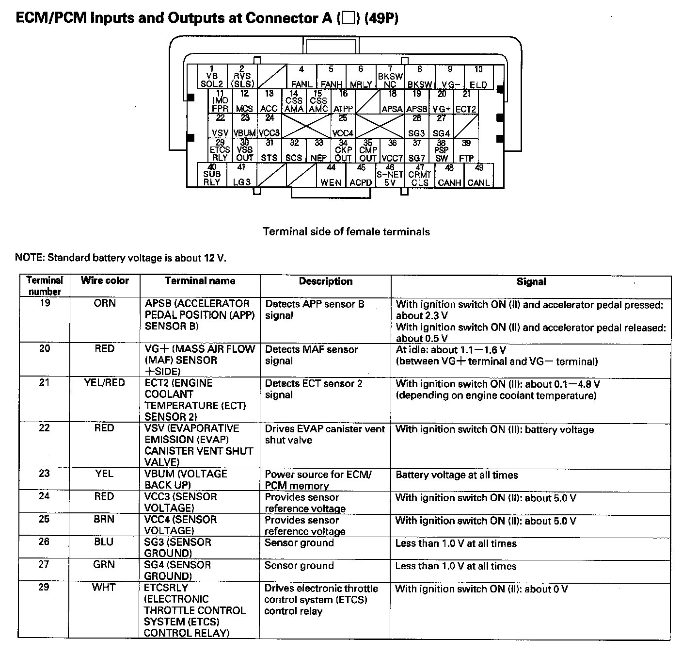 ECM/PCM Inputs And Outputs At Connector A (49P) (Part 5):