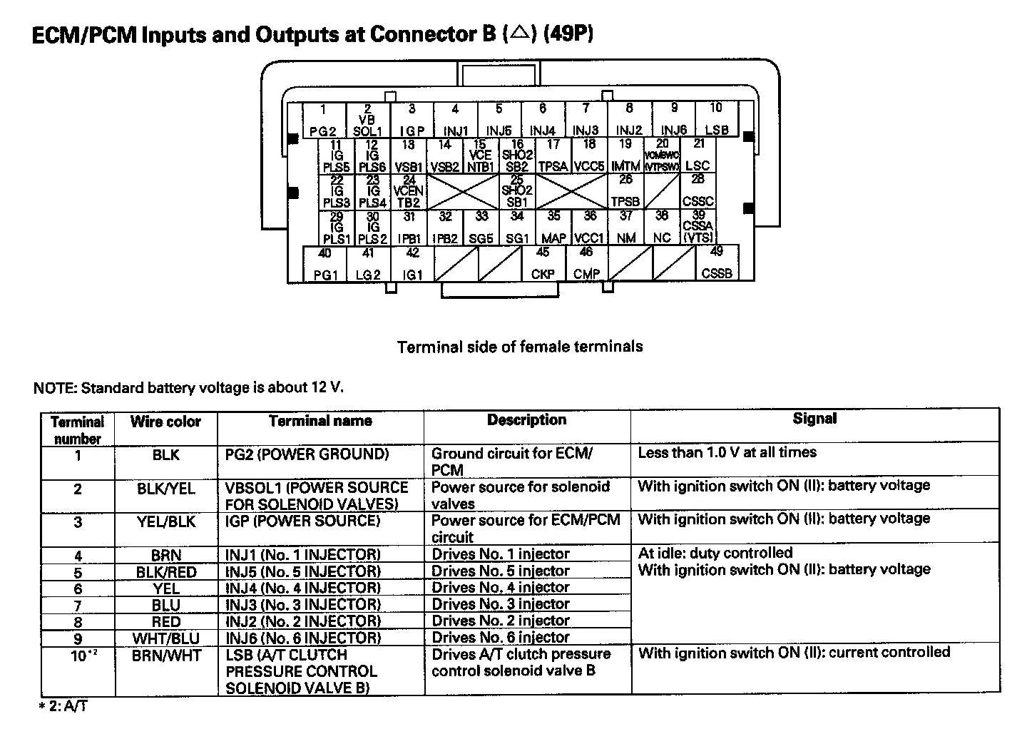 ECM/PCM Inputs And Outputs At Connector B (49P) (Part 1):