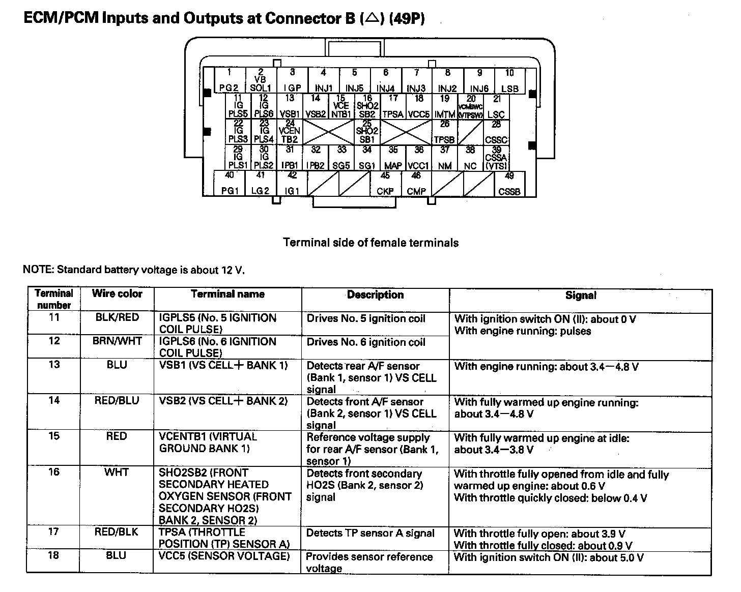 ECM/PCM Inputs And Outputs At Connector B (49P) (Part 5):