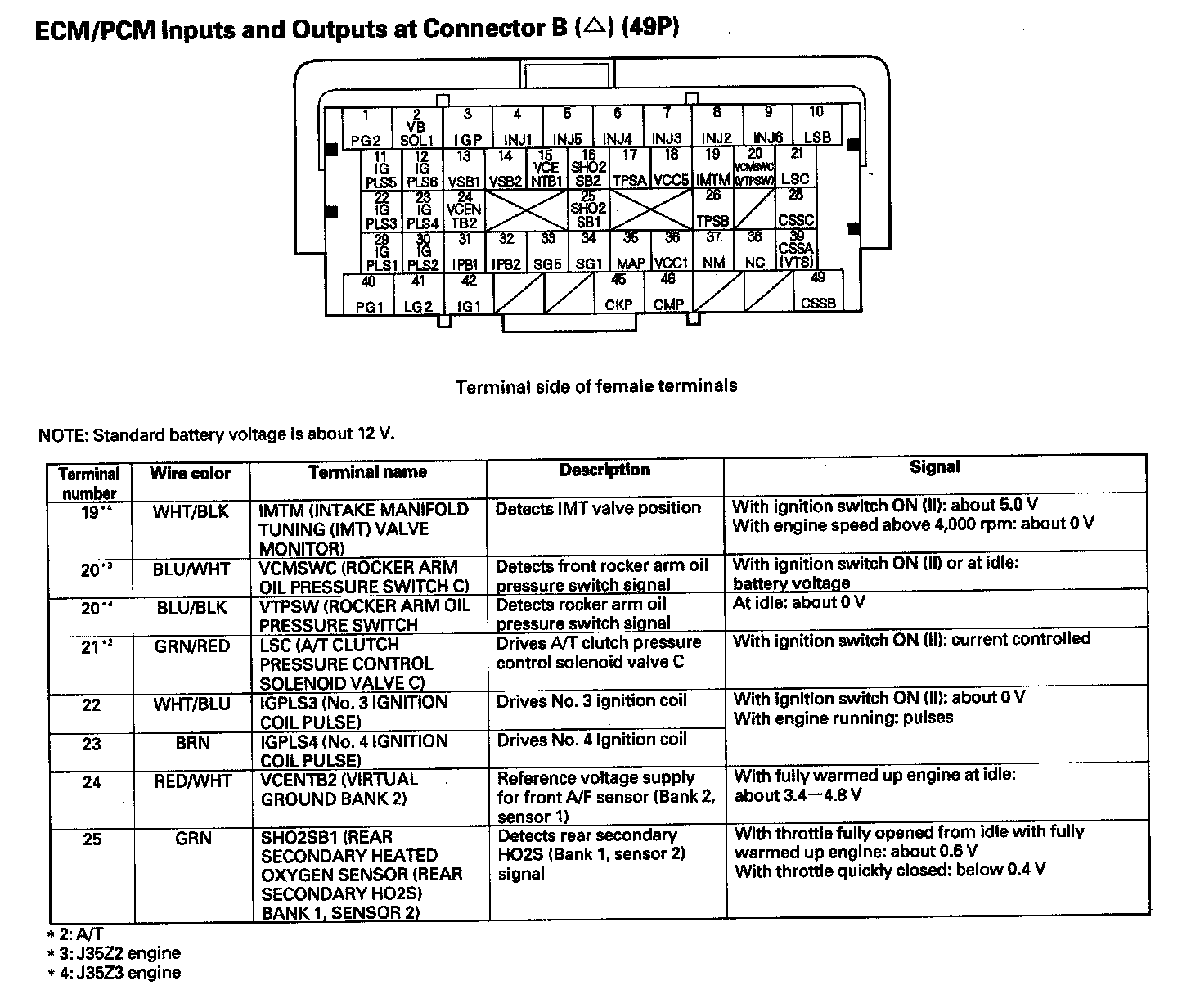 ECM/PCM Inputs And Outputs At Connector B (49P) (Part 4):