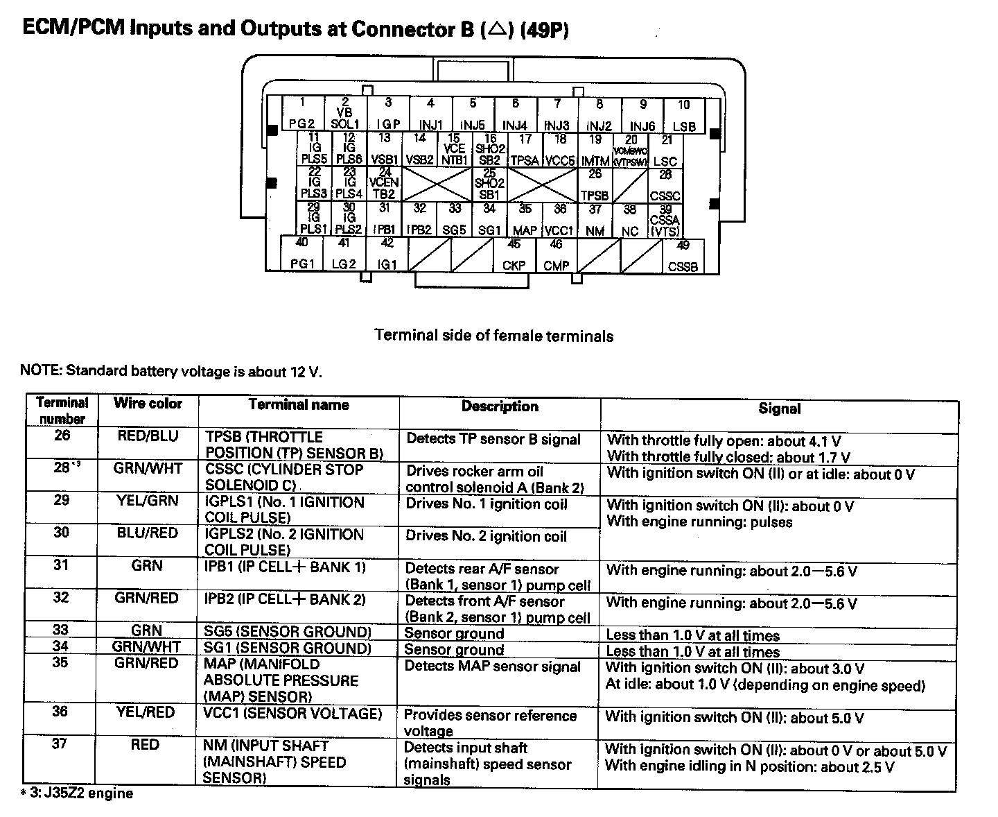 ECM/PCM Inputs And Outputs At Connector B (49P) (Part 2):