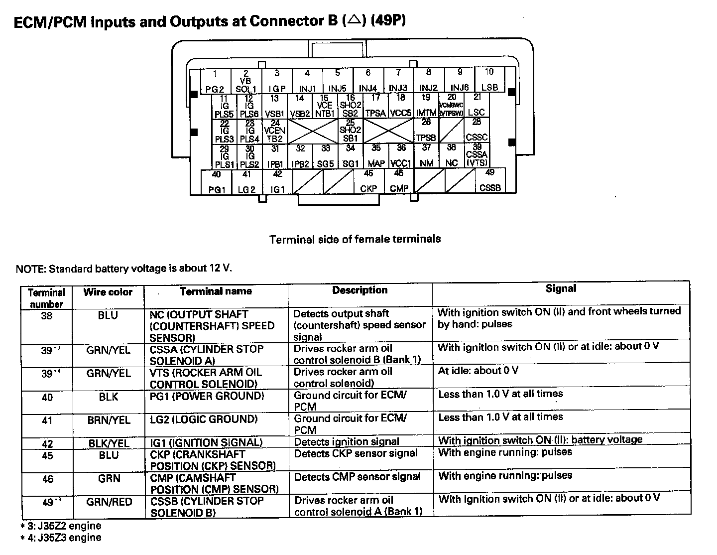 ECM/PCM Inputs And Outputs At Connector B (49P) (Part 3):
