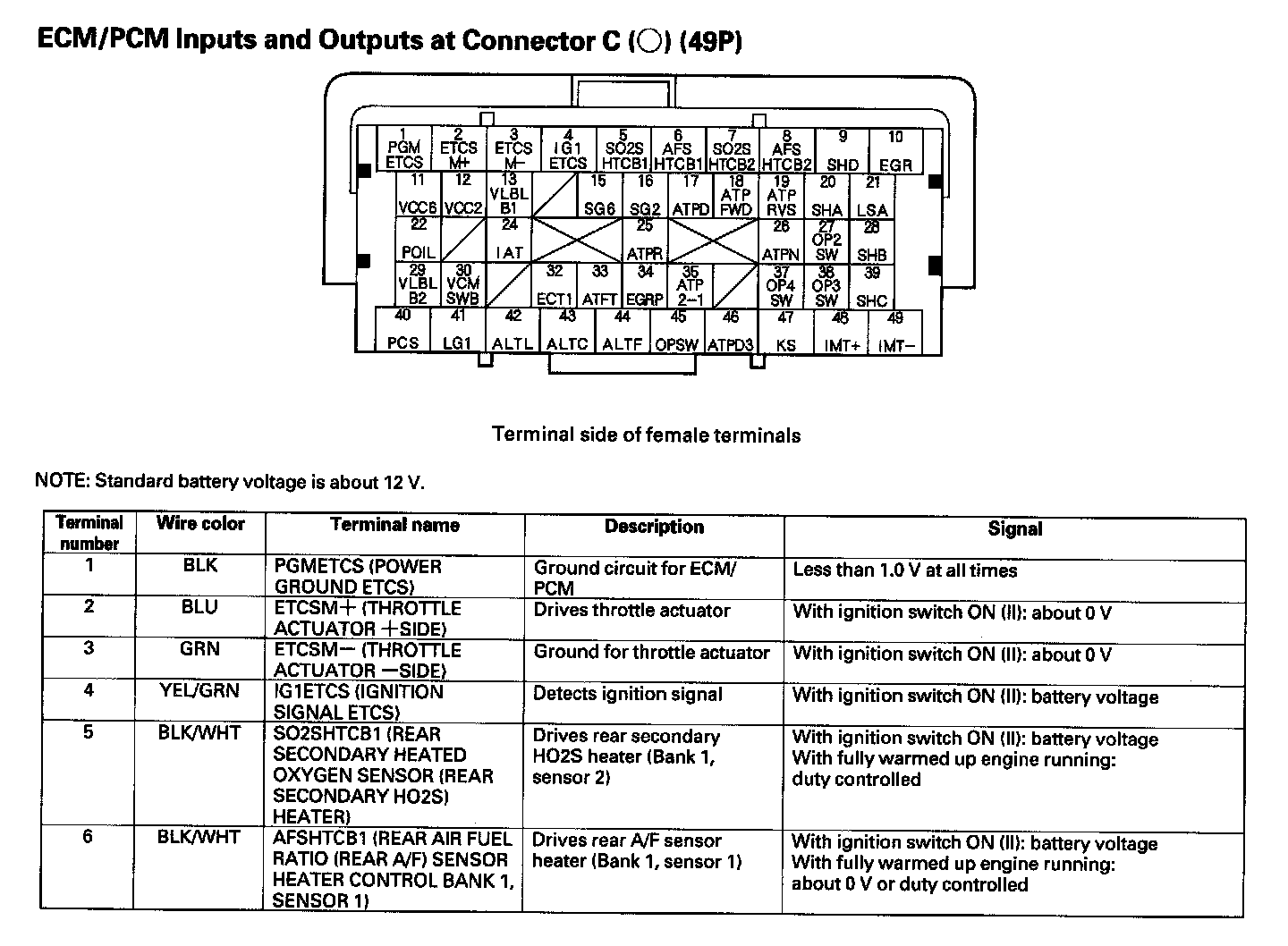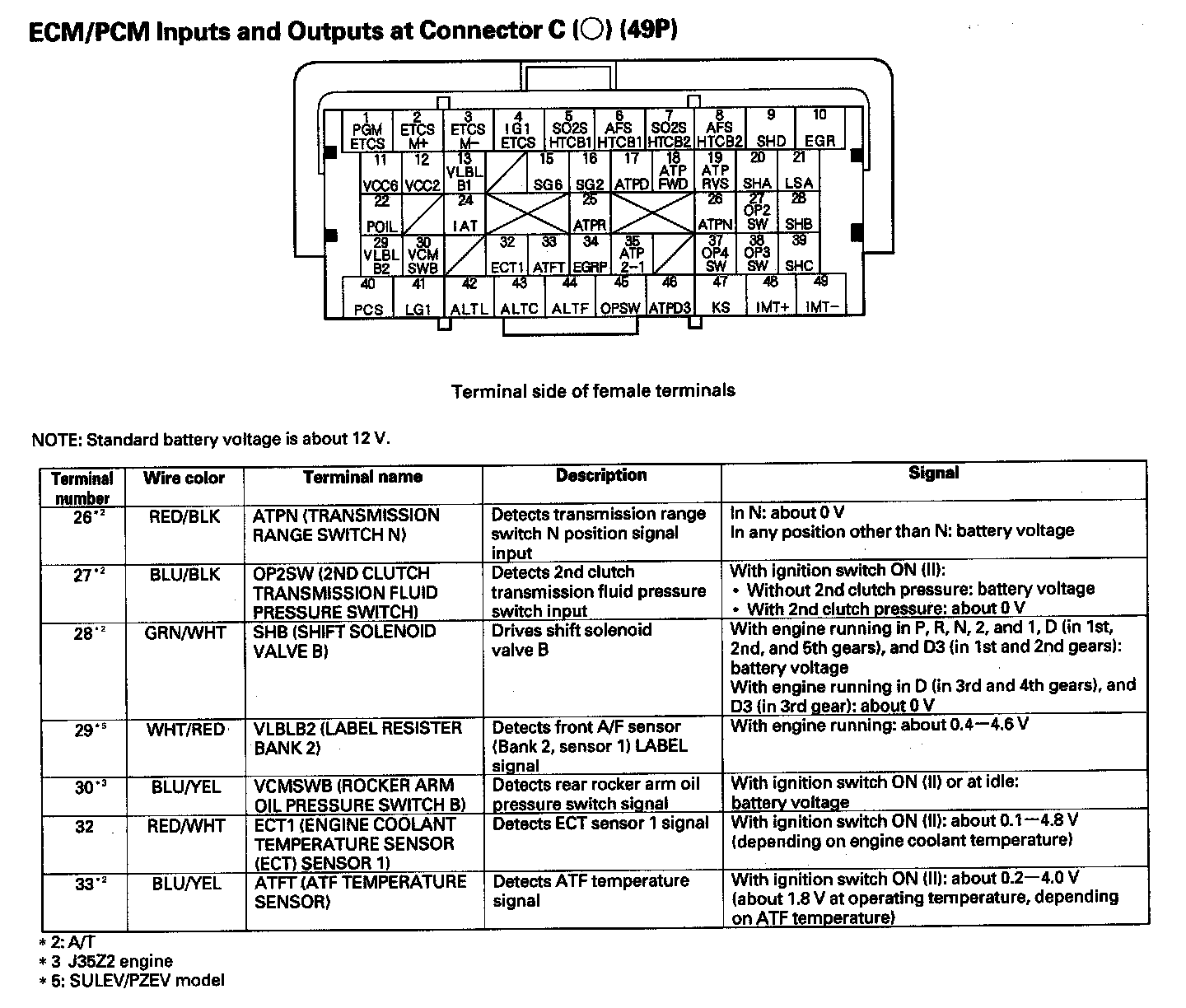 ECM/PCM Inputs And Outputs At Connector C (49P) (Part 6):