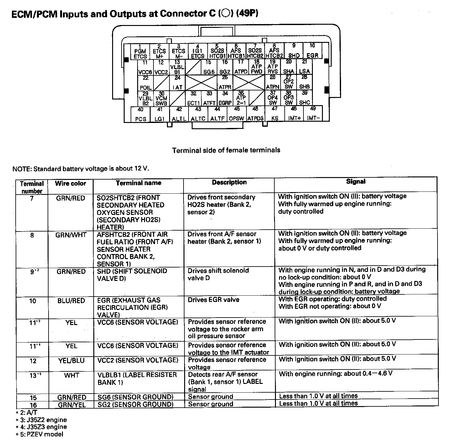 ECM/PCM Inputs And Outputs At Connector C (49P) (Part 5):