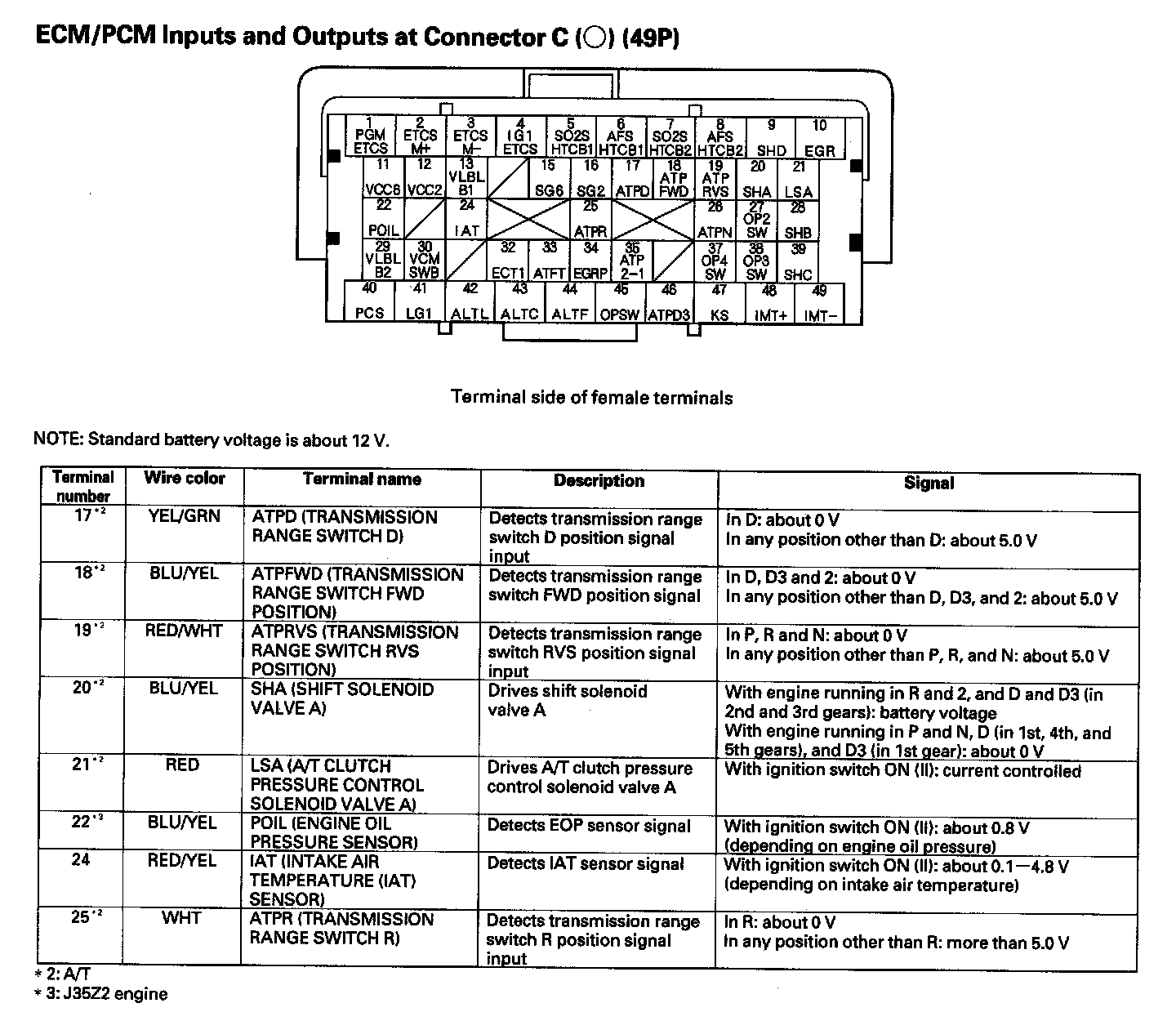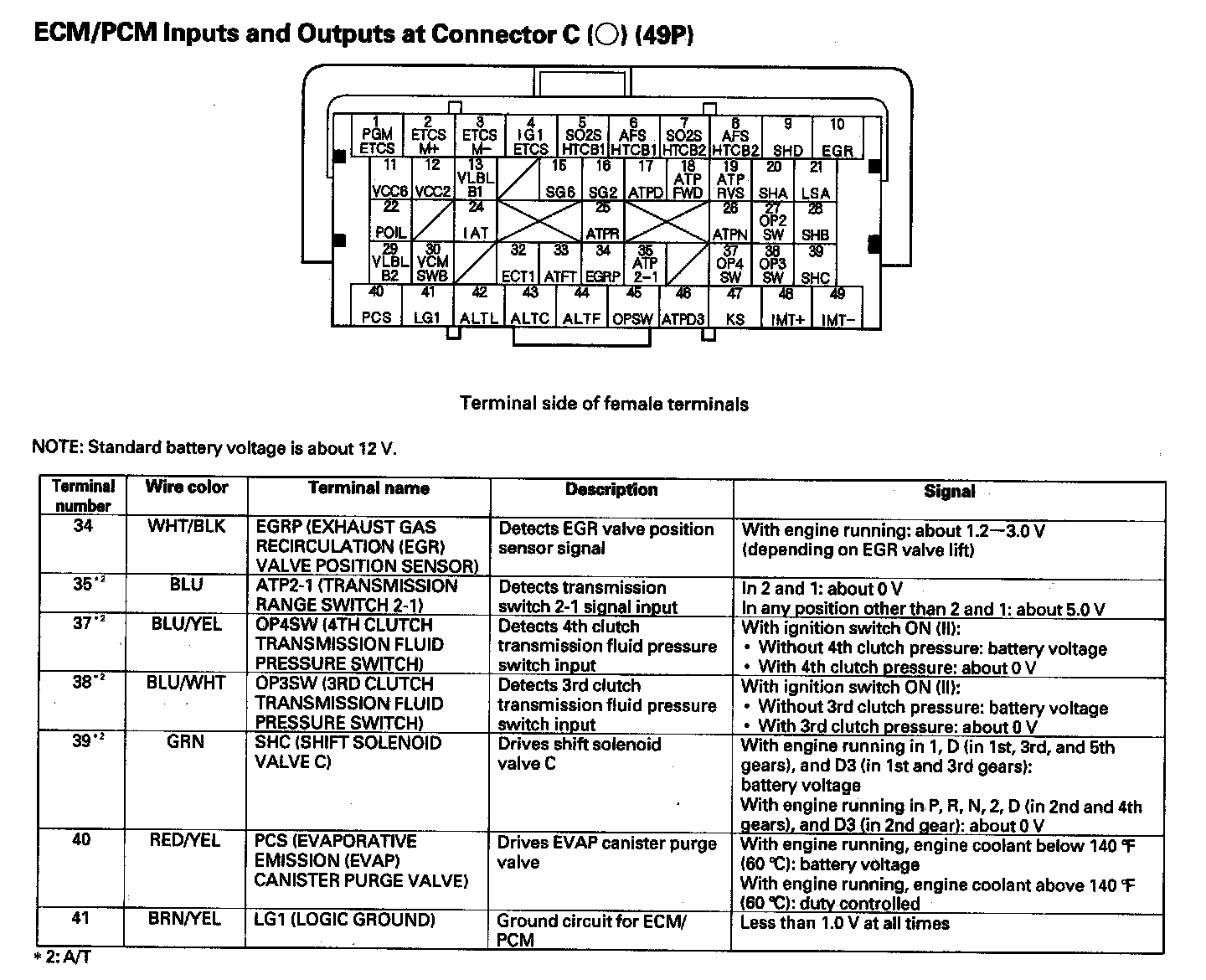 ECM/PCM Inputs And Outputs At Connector C (49P) (Part 1):