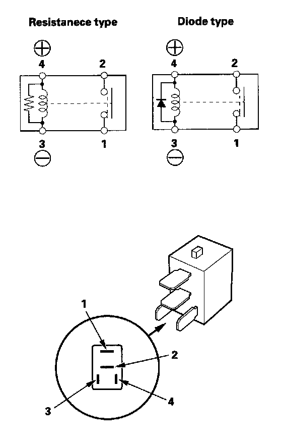 - There should be continuity between the No. 1 and No. 2 terminals when battery power is connected to the No. 4 terminal, and battery ground is connected to the No. 3 terminal.